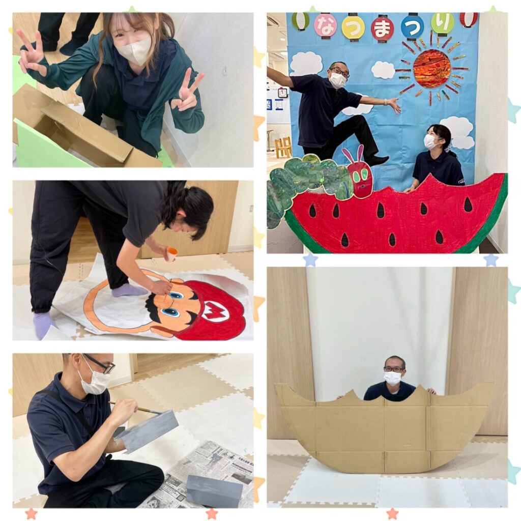 夏祭りの準備に奮闘するスタッフたちです😎