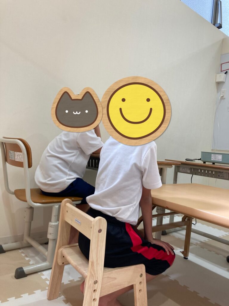 皆が笑顔で真剣に説明を聞いています。いつもより背筋が伸びて、ふとももに手をついて綺麗に座れています!素晴らしい👍