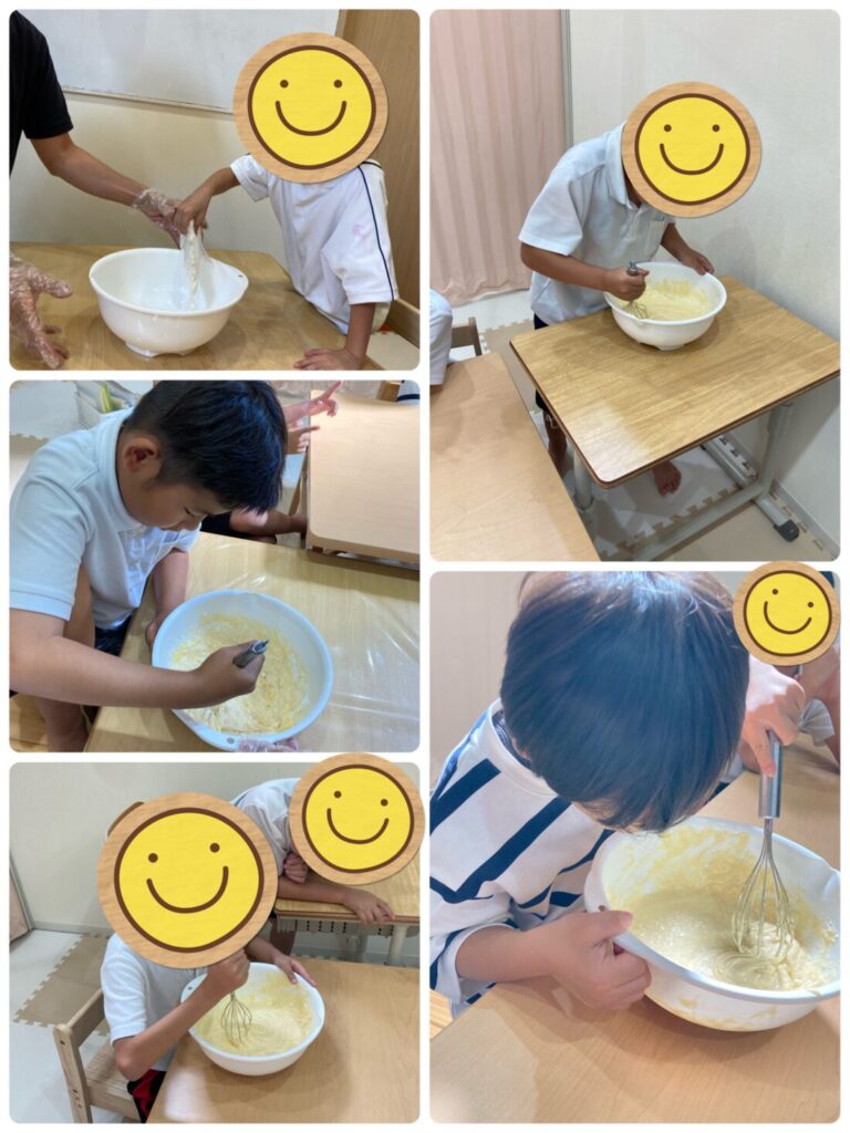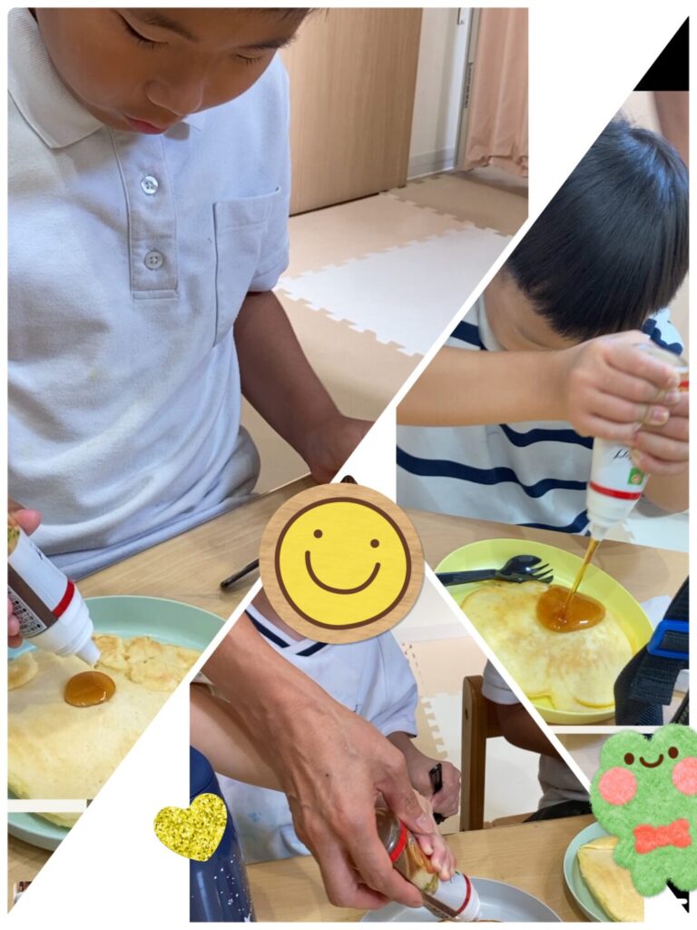 クッキングをすると保護者さまより、「シロップ食べれましたか?」など、ご質問いただくことがあります。普段は苦手な食べ物も皆でクッキングに参加することで、「食べてみよう」と意欲に繋がり、食べれることもあります。