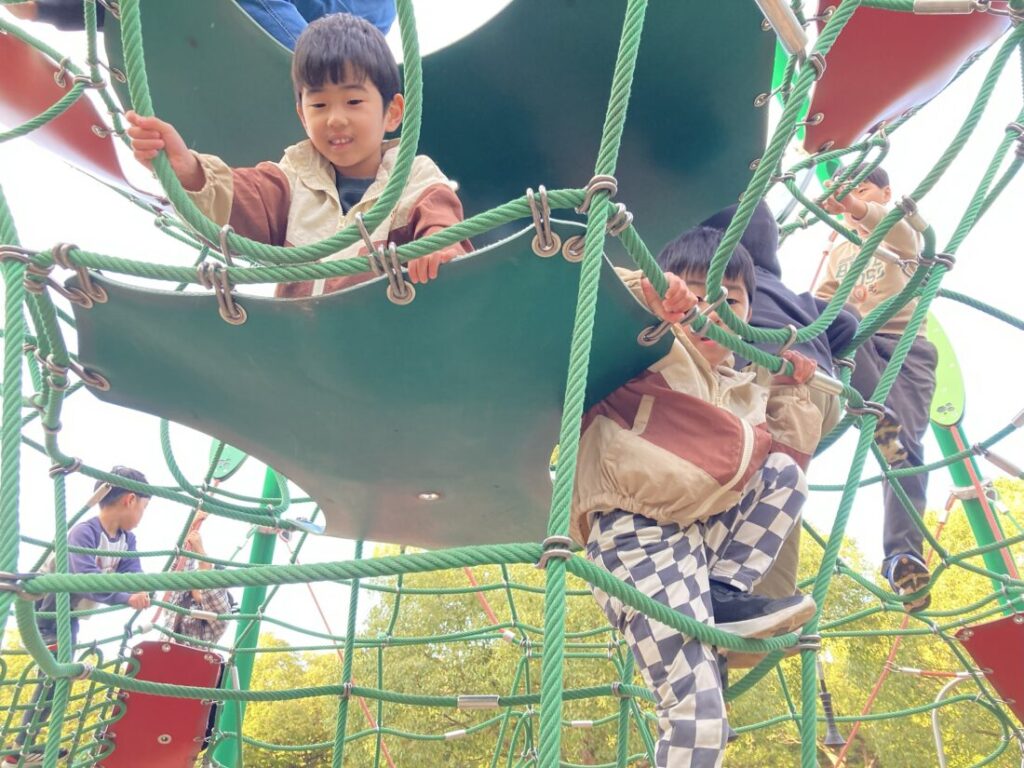 どうやって登るの?」と手助けを求めてくれました。「こうやって、階段みたいに~」と登り方の手本を見せて上で待っていると、“先生が上で待っていてくれる”という安心につながったのか、えいや!と勇気を出して手本の真似をしながら高い位置まで登ることができました👏✨