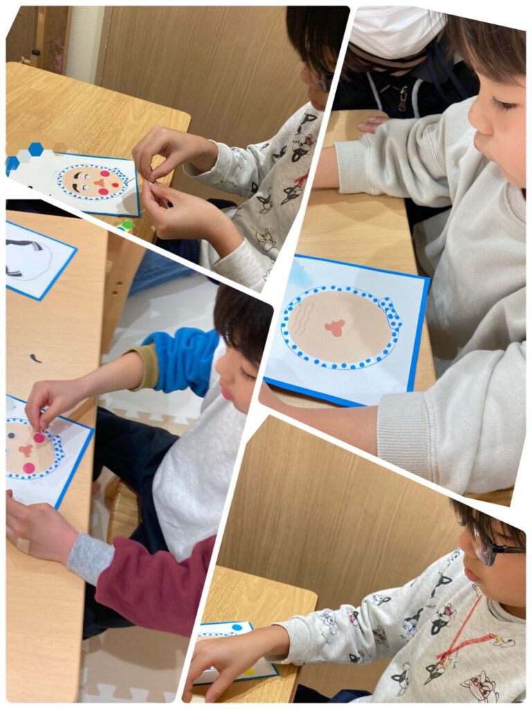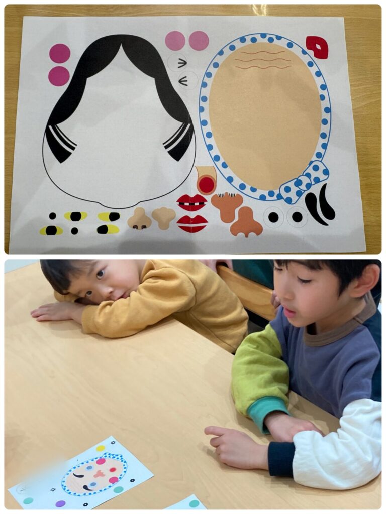 🎍お正月あそび🌅の一環として、福笑いカルタ作りをしました。
